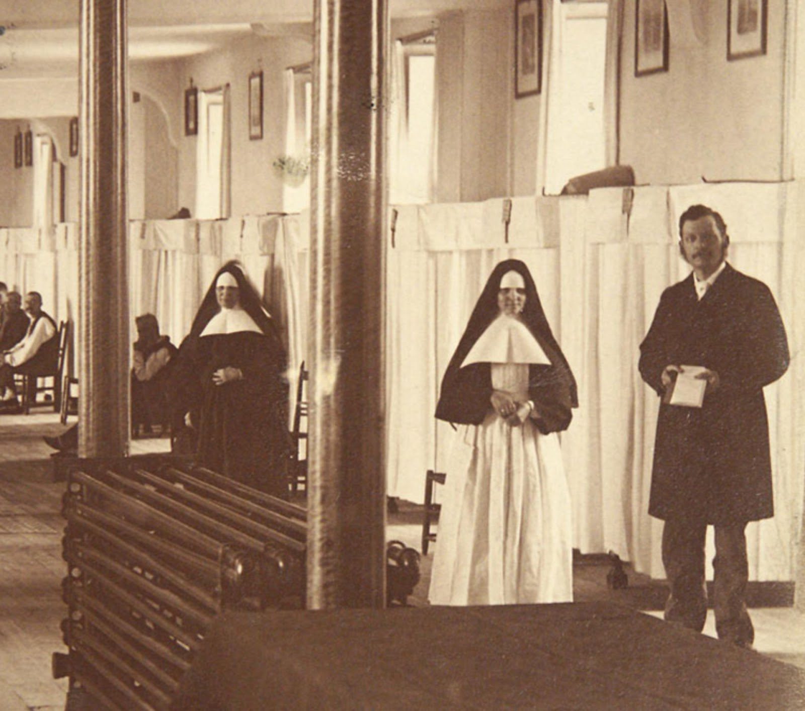 В те времена Hôtel-Dieu была одной из первых больниц в Северной Америке и второй в Новой Франции после Hôtel-Dieu de Québec. Уход за больными был их главной задачей, причиной их труда, усталости и т.д. Так же в Hôtel-Dieu ни одному пациенту не отказывали, а потому мужчину, обычное дело, госпитализировали.