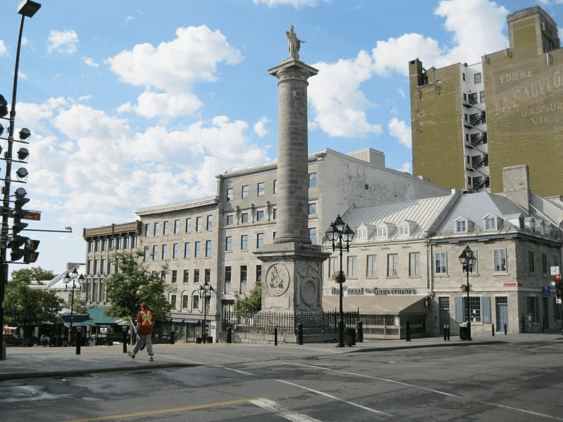 Памятник расположен на площади Жак-Картье. Он был установлен в 1809 году по проекту шотландского архитектора Роберта Митчелла в честь адмирала Горацио Нельсона, погибшего во время Трафальгарской битвы, где он привел британский флот к победе. Этот памятник является вторым старейшим монументом Нельсона после того, что располагается в Глазго.