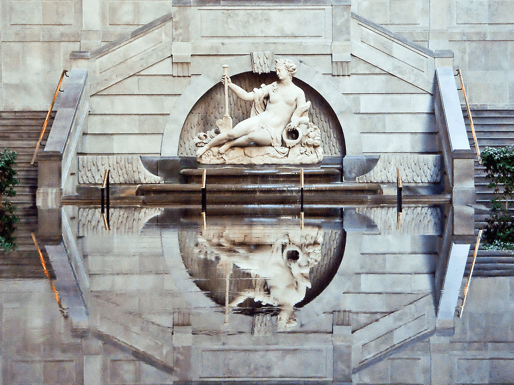 Амфирита известна как морская богиня в древнегреческой и древнеримской мифологии, которая была женой Посейдона. Скульптура является работой французского скульптора Дьедонне-Бартелеми Гибал. Статуя соответственно размещена в своей стихии – в фонтане Всемирного торгового центра Монреаля. Богиня удобно разместилась на лежаке из ракушек, камней и фруктов. Скульптура расположена под большой стеклянной крышей, что обеспечивает ей равномерное природное освещение и подчеркивает каждую деталь. Перед Амфитритой простирается черный гранитный бассейн площадью 200 квадратных метров, в котором отражается небо.