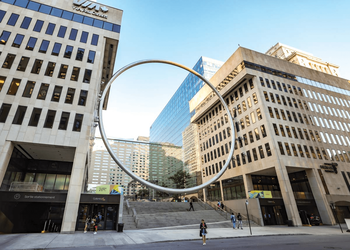 Скульптура полностью соответствует своему названию и представляет собой огромное кольцо диаметром 30 метров. Автором проекта является Клод Кормье. Оно расположено на входе Place Ville Marie и символизирует прочную связь между Монреалем и его жителями, ведь скульптура стала одним из самых любимых мест в городе, где постоянно проводятся различные мероприятия.