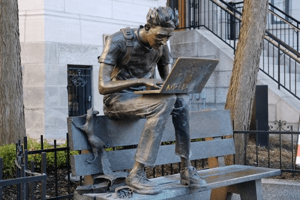 La Leçon с французского переводится как «на урок». Памятник находится на входе одного из самых престижных учебных заведений Канады — Университета Макгилла и изображает студента, который сосредоточился над своими делами в ноутбуке и даже не замечает, как белка крадет булочку из его гамбургера.